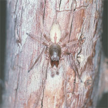 amongst foliage. In buildings, the spider's sac is built behind cupboards, pictures